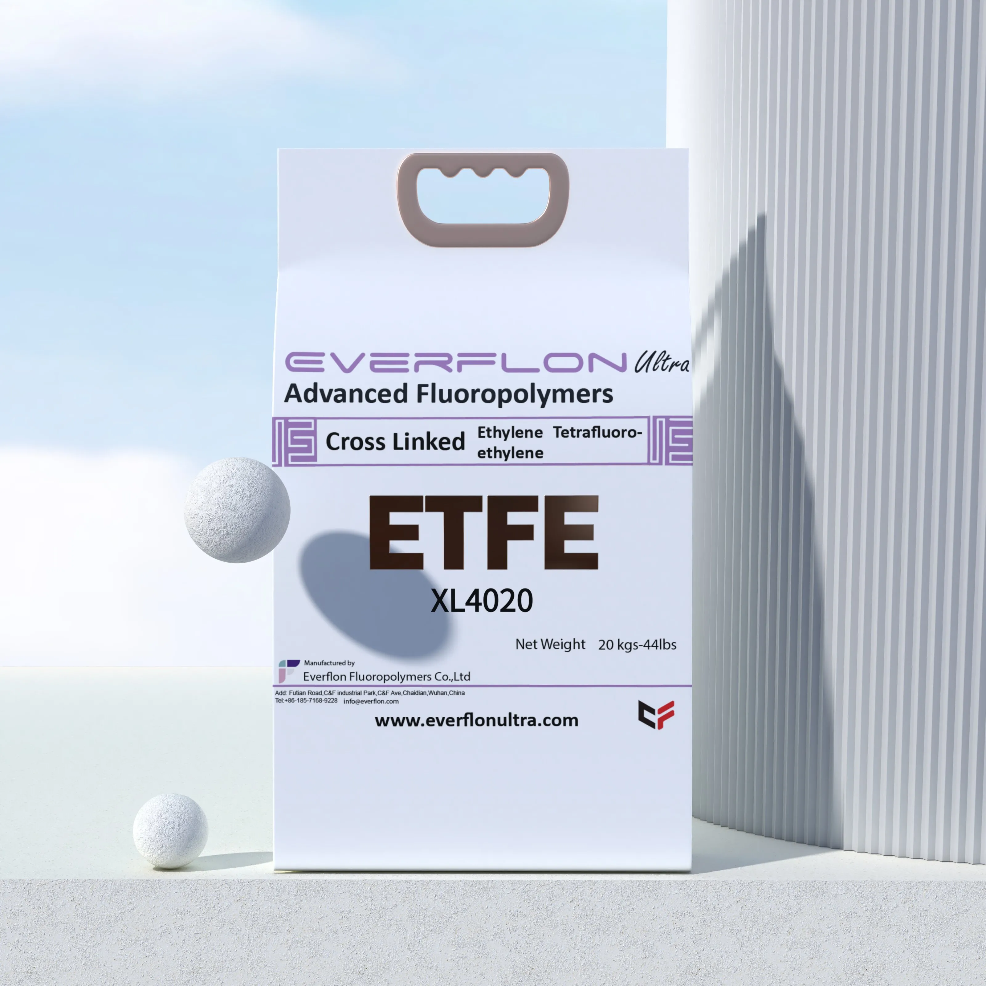 | Features | Excellent chemical resistance: Retains ETFE's compatibility with aggressive media — solvents, acids, alkalis and other corrosives. Wide temperature capability: Continuous service roughly -200 °C to 150 °C; short-term exposure up to ~200 °C. High optical quality: High transparency (up to ~95% transmittance) and low haze options for optical films and glazing. Robust mechanics: High toughness and impact resistance suitable for structural and dynamic parts. Good processability: Formulated for reliable extrusion, blow film, injection molding and coating processes with minimal loss of base resin performance. Regulatory compliance: RoHS and REACH-friendly formulations available; heavy-metal-free options available. |